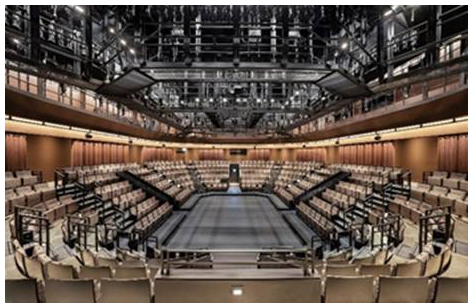 The Ensemble Theater in Honor of Helen Zell is located at the heart of the Arts and Education Center. This intimate and state-of-the-art 400-seat theater in the round is one of its kind in Chicago, with theater design and acoustics by Charcoalblue. Only six rows deep—with audience members never more than 20 feet from the stage—Charcoalblue designed the incredibly intimate Ensemble Theater from the inside out to integrate the theater into the fabric of the surrounding building, providing a truly unique theatergoing experience.