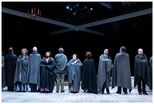 **** Highly Recommended I found myself captivated by Marriott Theatre’s production of Titanic the Musical. It turns out that Marriott’s arena-style stage is ideal for depicting the idea of Titanic. We don’t need a ship to tell the story, we need the people on board to tell their stories. Kudos to Director Connor Gallagher for keeping the focus on them. I can’t say enough about this cast – their faces told the story – pride, hope, boredom, envy, joy, fear, panic and finally acceptance. I am in awe! 4 BIG Spotlights