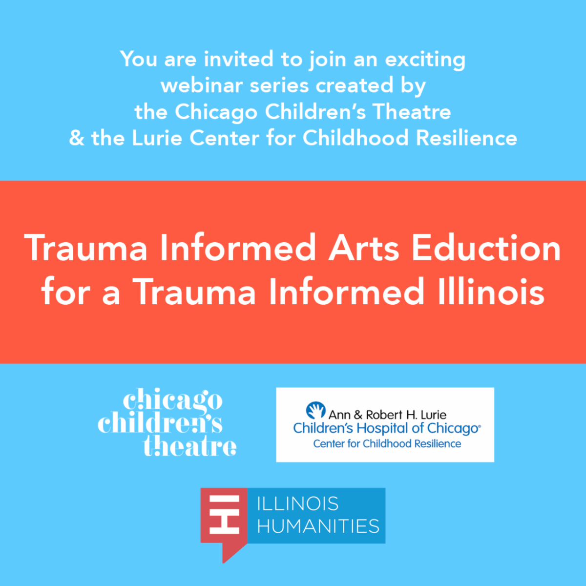 According to Mark Hallett, Program Manager, Illinois Humanities, “There is a lot of interest in this work not only in Chicago, but statewide, and Illinois Humanities is proud to support Chicago Children’s Theatre and the Center for Childhood Resilience at Lurie Children’s in their efforts to bring people together to advance the conversation on the trauma-informed approach. It can be a real game-changer.”
