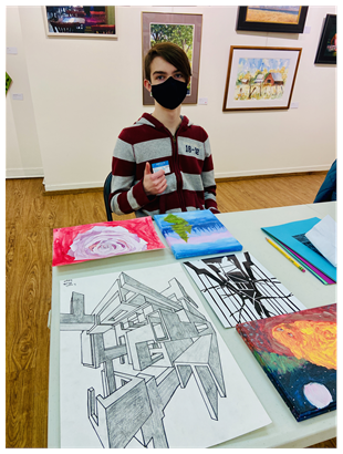 Teen artists prepping and curating their artwork. ...