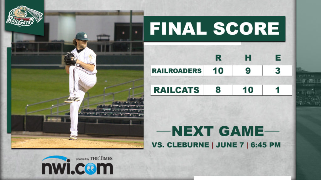 Despite scoring eight of the game’s final nine runs, the Gary SouthShore RailCats (11-13) dropped Tuesday’s series opener with the Cleburne Railroaders (12-12) 10-8 on Tuesday night.